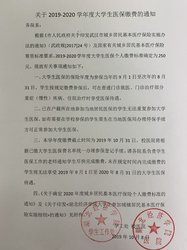关于印发《湖北经济学院大学生居民医保实施细则》的通知.doc