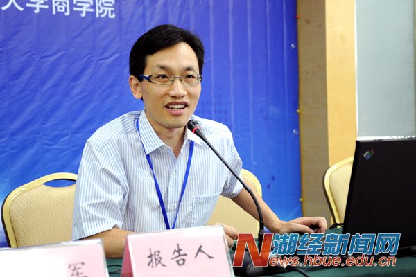 台湾中原大学商学院院长刘立伦教授详细介绍了台湾中原大学商学院的基本情况及发展历程,并作了题为“过度自信与诱因合约选择关系之研究”的主题报告。他希望两岸、两校加强联系,共同促进学科发展和学术繁荣。