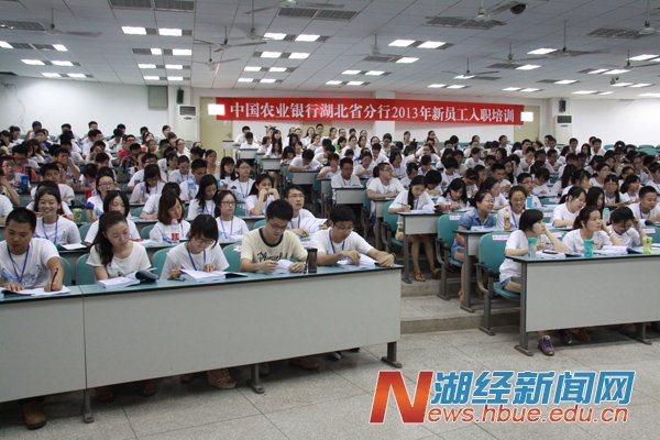 本网讯(特约记者高鹏) 7月16日,中国农业银行湖北省分行2013年新员工培训首期班开班典礼在我校第二学术报告厅隆重举行。副校长、农银长江学院副理事长漆腊应教授出席,代表学校对来自全省农行系统大学生新员工表示诚挚欢迎。湖北省农行党委书记、行长、农银长江学院理事长姜瑞斌对新员工作入职培训讲话。