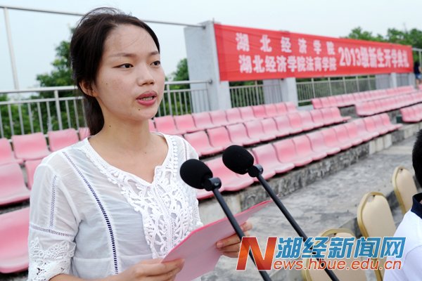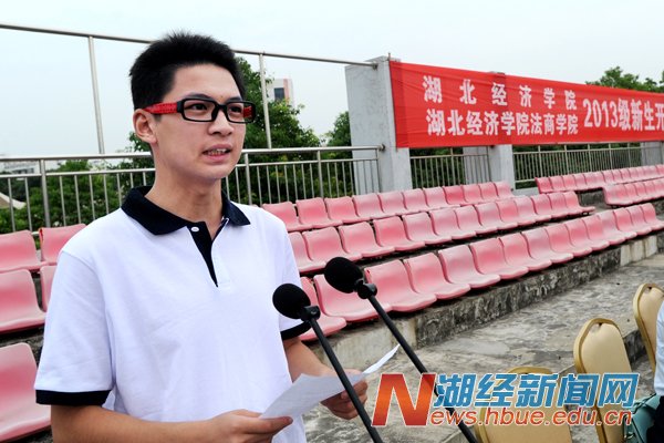 “在新的环境中,面对新的起点,让我们以恩格斯的名言共勉,时代的命运取决于年轻人崇高而奔放的激情。让这一段在法商学院的大学生活成为人生中最美好、最难忘的时光!” 新生代表、法商学院播音主持系13401班翁焕杰表达了法商全体新生的期待和心声。