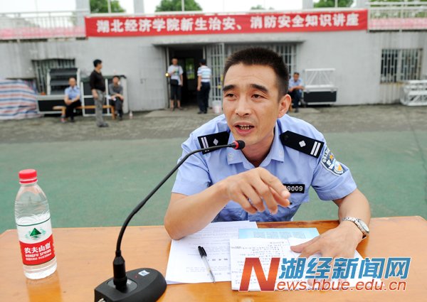 本网讯(记者 杨宏斌 摄影报道)学习生命安全课,迈好大学第一步。9月11日,学校保卫部邀请武汉市江夏区藏龙岛派出所和江夏区消防大队的官兵,为全校7000多名新生(含法商学院)开讲新生治安、消防安全,普及安全知识,强化安全意识,提高自防自救能力,受到新生欢迎。