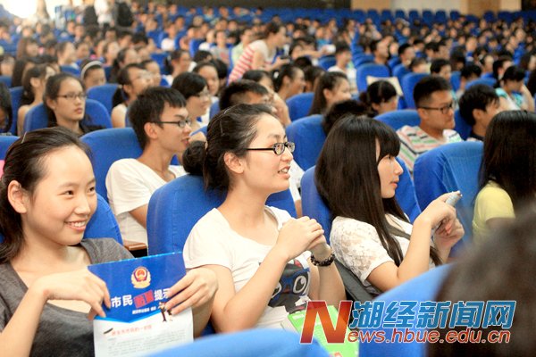 本网讯(记者 吴梦 摄影 邹冉)9月14日,由武汉市公安局举办的“送平安进高校”安全讲座在大学生活动中心举行。校党委副书记张奋勤,武汉市公安局领导和警官,校保卫部、团委,1000余名新生参加了活动。