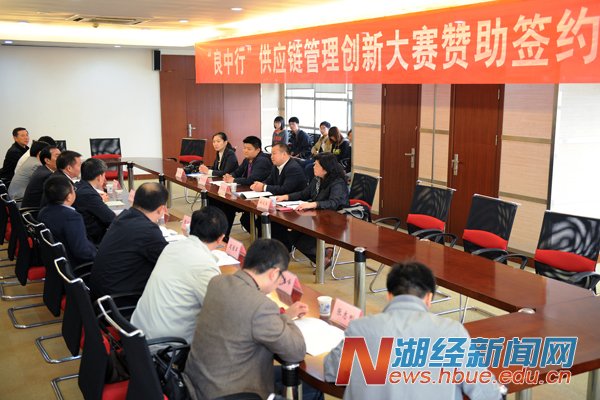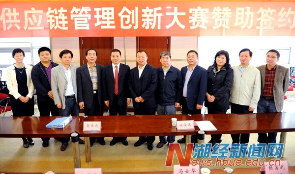 本网讯(特约记者 吴雄 摄影 杨宏斌)10月29日,由学校、武汉良中行供应链管理有限公司共同主办的“良中行”供应链管理创新大赛赞助签约仪式举行,副校长漆腊应,教务处、学工处、招毕处、团委、物流与工程管理学院、统计学院、信管学院等有关单位负责人,武汉良中行供应链管理有限公司董事长朱长良一行出席签约仪式。
