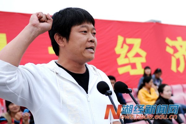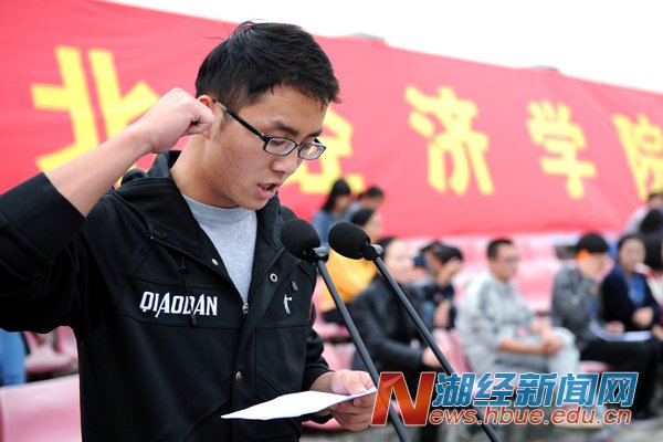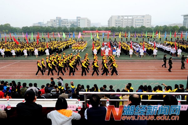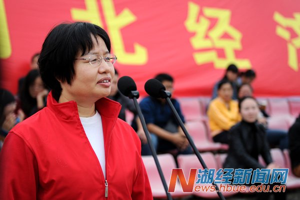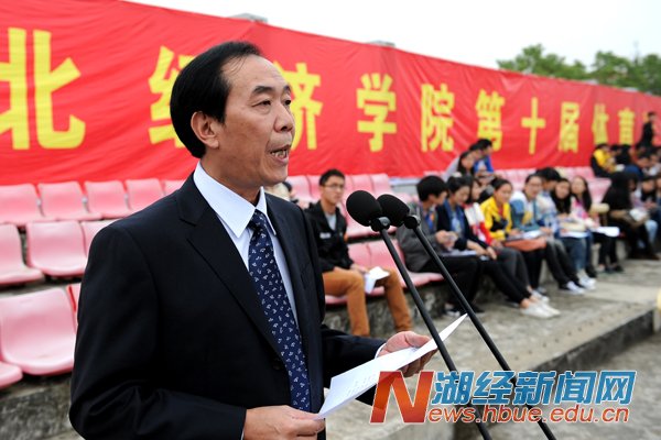 副校长、校体育运动委员会主任漆腊应致开幕辞,他指出,学校十分重视体育工作,一直以来,以提高体育教学质量为中心,坚持教学改革,坚持竞技体育与群众体育相结合,田径、排球、体育舞蹈、健美操、桥牌等项目在湖北省高校运动会上屡创佳绩,校内体育赛事也精彩纷呈。学校每年举办运动会,旨在彰显体育的育人功能,引导和激励师生参与体育运动、享受体育乐趣。他希望大家秉承“更快、更高、更强”奥林匹克精神,遵循“公开、公平、公正”竞赛原则,以饱满的激情、高昂的斗志、勇敢拼搏的信念、团结向上的精神投入到运动会中,赛出风格,赛出水平。