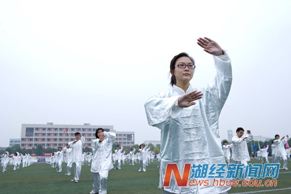 开幕式表演中,国旗护卫队迈着坚定步伐,昂首阔步;鲜花队身着黄色长裙,手举鲜花,展现青春风采;各院系运动员代表队有序入场,口号嘹亮,誓将体育精神发扬到底;370人的太极方阵伴随着舒缓悦耳的音乐,动作轻柔,整齐划一;爵士舞表演活力四射,洋溢着青年大学生蓬勃朝气。