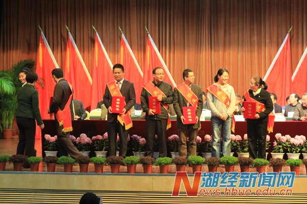 校领导为受表彰的先进集体和个人颁奖。