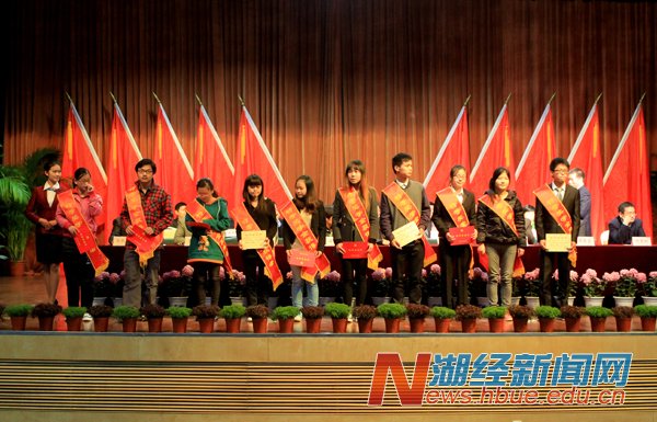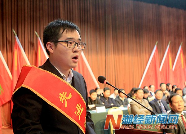 国家奖学金、特等奖学金、优秀大学生标兵、优秀学生干部获得者叶秀玲(信息管理学院),班主任标兵徐慧玲(金融学院),先进辅导员刘帷(国际贸易学院)在大会上作了交流发言。
