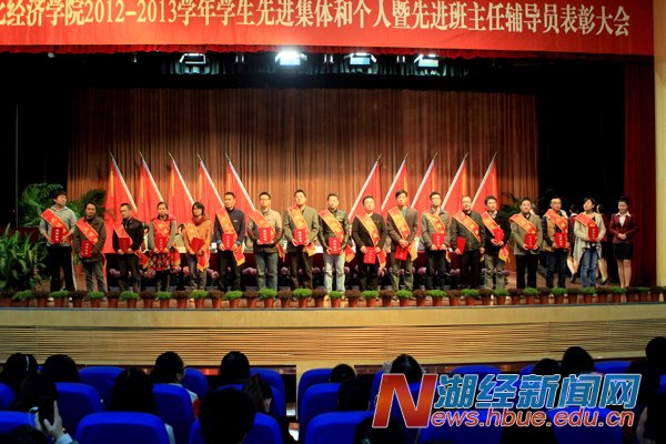 副校长漆腊应宣读2012-2013学年学生先进集体和个人表彰决定,会展Q1141班等33个班级荣获“先进班集体”称号,王莉莉等43名学生荣获“优秀大学生标兵”称号,郑婷等602名学生荣获“优秀大学生”称号,李欢等387名学生荣获“优秀学生干部“称号,叶秀玲等10名学生荣获特等奖学金,冯雪等657名学生获得一等奖学金,陈静等1287名学生获得二等奖学金,吴思佳等1916名学生获得三等奖学金。