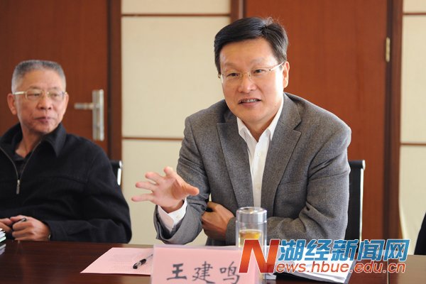 本网讯(特约记者 王腾 摄影 杨宏斌)12月9日,湖北省人大常委会副主任王建鸣一行来我校开展《湖北省水污染防治条例(草案)》立法调研,省人大法制委员会主任章新生,副主任王泽洪、栾丽娜,省人大常委会副秘书长滕鑫曜,省人大常委会法规工作室副主任黄文平、经济法规处负责人等参加了调研活动。湖北省政协副主席、校长、湖北水事研究中心主任吕忠梅,湖北水事研究中心全体研究人员参加座谈会。副校长漆腊应主持会议并致欢迎辞。