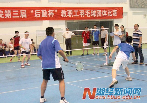 本网讯 5月25日,湖北经济学院第三届“后勤杯”教职工羽毛球赛在体育馆举行。