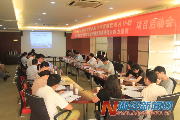 本网讯(特约记者 索凯峰 摄影 邹冉)6月13日,我校承担的中国清洁发展机制基金2013年度赠款项目计划——“湖北省应对气候变化统计核算制度研究及能力建设”项目启动会召开。校长、碳排放权交易湖北省协同创新中心(培育)(以下简称“中心”)理事长吕忠梅出席并致辞,校党委副书记、中心主任张奋勤,省发改委气候处处长田啟,省统计局工业处处长魏尚平,省林业勘察设计院副院长吴盛德以及课题分包单位负责人等相关领导和专家参加会议。会议由科研处处长陈向军主持。