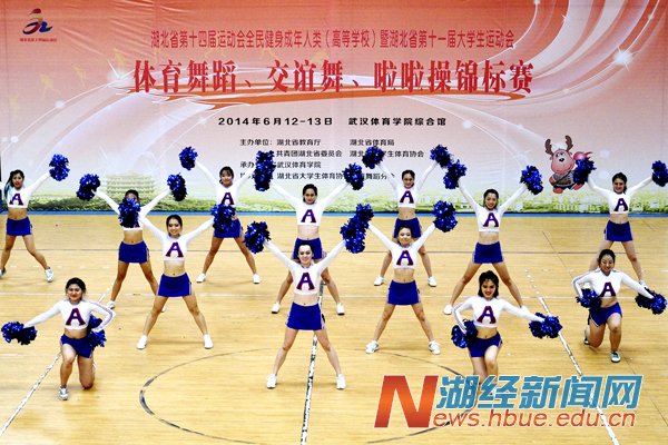 本网讯(记者 梅洁 黄文韬 通讯员 江婉欣 摄影报道)6月12日至13日,湖北省教育厅、湖北省体育局、共青团湖北省委员会和湖北省大学生体育协会联合主办的第十四届运动会全民健身成年人类(高等学校)体育舞蹈、交谊舞、啦啦操锦标赛在武汉体育学院举行,来自全省的40支高校队伍参赛。我校Amazing啦啦队和体育舞蹈代表队分获5项第一和3项冠军。