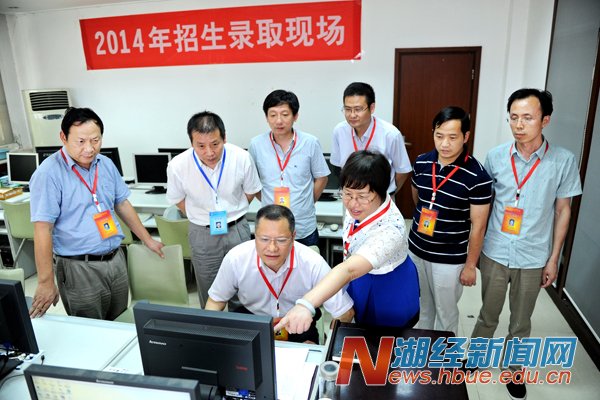 本网讯(记者 杨宏斌 通讯员 陶慧)7月9日中午,学校暑期工作会议刚刚结束,校领导温兴生、吕忠梅、漆腊应、廖长林、何慧刚就来到2014年学校招生录取工作现场,看望慰问招生工作人员,检查指导招生录取工作。