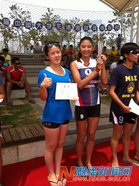 本网讯 阳光与激情邂逅,青春在沙滩绽放。7月13日至17日,第十届中国大学生沙滩排球锦标赛在青岛市举行。我校选派2支队伍,在教练王义平教授、领队崔高原老师的带领下,首次参加比赛。由雷志丹、沈佳欣组成的女队和李伟、王文振组成的男队,在抽签不利、缺乏比赛经验的情况下,经过5天的奋力拼搏,打出风格,打出水平,分别取得女子高水平组第六名和男子高水平组第十名的优异成绩,受到组委会和其他高校好评。