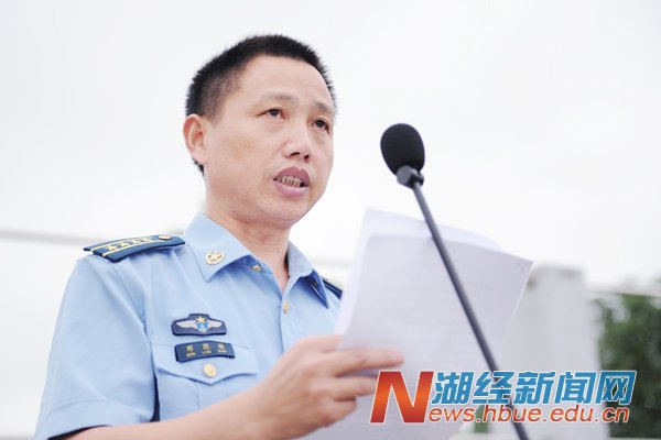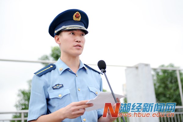 张杰畅代表空军预警学院军训教官庄严承诺:将以良好军人形象认真履行军训职责,以兄长之情关心爱护大家,帮助同学们度过紧张有序的军训生活。