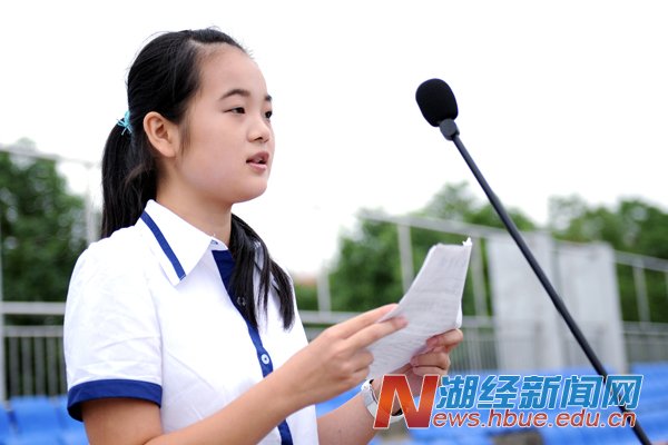 会计Q1442班崔茜茜代表新生发言,她说:“我们会积极主动学习教官的良好思想品德和作风,一切行动听从教官指挥,严格要求自己,刻苦训练,提升军事素质,磨练思想意志,争取军事技术和思想意志得到全面提升,用优异的成绩完成大学第一课。”