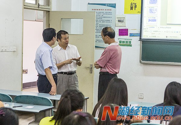本网讯 9月1日,新学期开学第一天,全校课堂教学井然有序。上午,副校长漆腊应带领教务处负责人、教学督导及相关人员到各教学楼、实验楼等检查新学期教学运行情况,各教学院系检查小组也对本院系课堂教学情况开展专项督查。从检查的情况看,教师课前准备充分,按时到岗上课,精神状态饱满;学生课堂到课率较高,精神面貌良好;各班级教材课前基本发放到位,各项教学设施运转正常,教学秩序平稳有序。