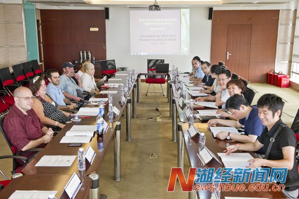 本网讯(特约记者 李勇 摄影 杨宏斌)9月4日,学校举行2014-2015学年外籍教师岗前培训会。国际交流与合作处、教务处、外国语学院、旅游与酒店管理学院、法商学院等单位负责人和全体外籍教师参加。会议由国际交流与合作处副处长李勇主持。