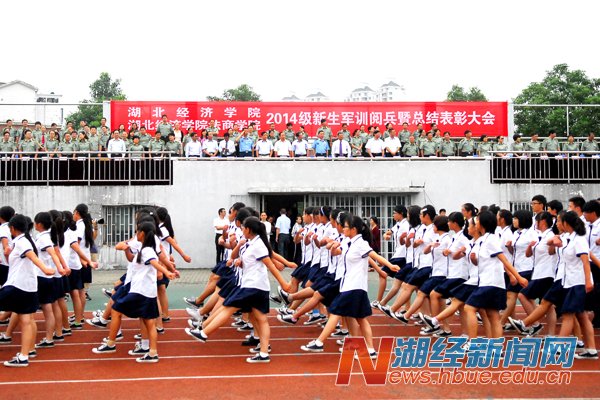 本网讯(记者陶慧 摄影报道)9月13日下午,伴随着雄壮的军乐,2014级新生军训阅兵式暨总结表彰大会在西区运动场举行。校领导温兴生、吴少新、鲁晓成、廖长林、何慧刚,空军预警学院邓朗顺大校、预警装备系副主任谢树军中校,法商学院院长杨正才、党委书记曾海燕,有关部门及院系负责人出席活动。校党委副书记张奋勤主持。
