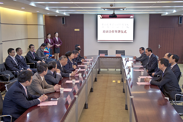 漆腊应、刘永生代表双方签署培训合作协议。根据协议,我校将提供校内场地作为农银大学湖北分校培训基地,用于湖北农行教育培训及举办各类会议。培训基地是自成一体、相对封闭、单独管理的独立场地,建筑总面积12000平方米,能同时容纳400人吃住学一体。