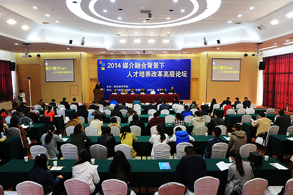 本网讯(记者 常程 摄影 邹冉)11月22日,以“媒介融合背景下的人才培养改革”为主题的高层论坛在我校国际学术交流中心召开。本次论坛由我校主办,研究生处、科研处、新闻与传播学院共同承办。省委宣传部纪检组长问青松,副校长漆腊应、鲁晓成,湖北省新闻出版局出版管理处处长胡国祥,来自全省高校、传媒集团的30余名专家、学者、企业家代表应邀出席论坛。新闻与传播学院全体教师参加。