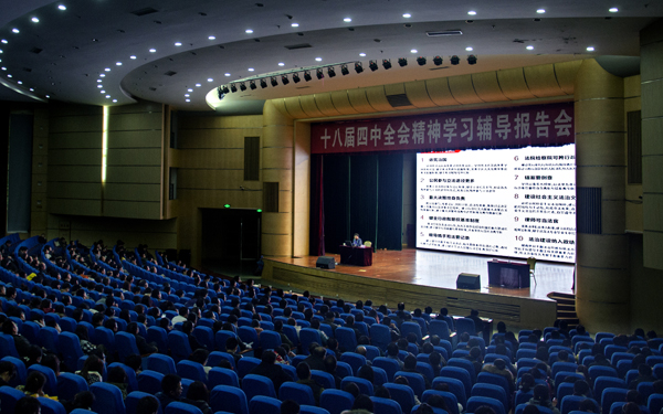 本网讯(记者 陶慧 卫超妍 通讯员 吴亮 摄影 陶慧 夏昊炜)11月27日,十八届四中全会精神学习辅导报告会在大学生活动中心一号报告厅举行。省政协副主席、校长吕忠梅作专题辅导报告。校领导、全体教职工和学生代表1500余人参加。校党委副书记张奋勤主持报告会。