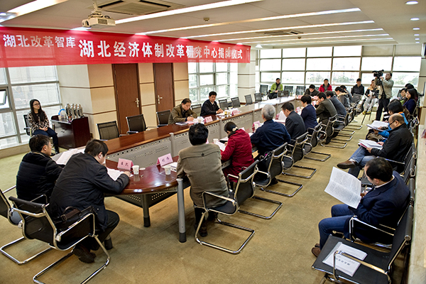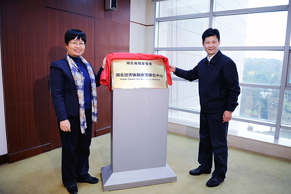本网讯(记者 陶慧 摄影 杨宏斌)11月28日,省政协副主席、校长吕忠梅,省委副秘书长、省委政研室(省改革办)主任赵凌云,共同为湖北改革智库•湖北经济体制改革研究中心(以下简称“中心”)揭牌。省委政研室(省改革办)改革规划处副处长鲁民,校科研处处长陈向军、中心负责人及研究人员、省级科研平台负责人参加揭牌仪式。仪式由副校长漆腊应主持。