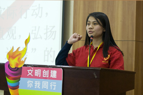 活动中,我校青年志愿者联合会主席屈定文、湖北工业大学青年志愿者代表进行了“文明火炬”交接仪式。校团委学生副书记陈瑞松介绍了我校志愿服务的发展历程,并发布志愿服务活动清单。青年志愿者联合会团支书黄秋惠带领全体同学重温中国青年志愿者誓词。