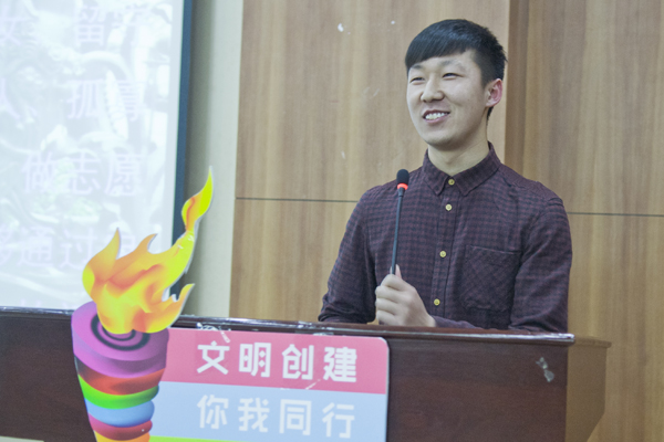 经院学子奖济民奖获得者祁鹏发表了文明传递主题演讲。他以自己丰富的志愿服务经历向现场观众深刻阐述了他对志愿精神的理解:不计回报、自愿地、无偿地服务他人,服务社会。