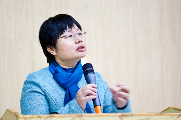 吕忠梅代表学校向各位大德居士、爱心企业和校友表示感谢,寄语贫困学子面对困难,勇于奋斗,懂得责任与感恩,将爱心传递下去。