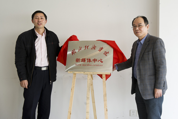 本网讯(记者 郑雯洁 梅洁 摄影 陶慧)3月27日,由党委宣传部、新闻与传播学院联合建设的“湖北经济学院新媒体中心”(以下简称“中心”)在人文艺术楼举行揭牌仪式,党委副书记张奋勤与“中心”指导教师、新闻与传播学院张军教授共同为“中心”揭牌,学校官方微信(账号名称:湖北经济学院)同步正式上线运行。党委常委、宣传部长张以林,“中心”项目指导老师、工作人员代表及部分学生参加。揭牌仪式由新闻与传播学院党委书记汤中秋主持。
