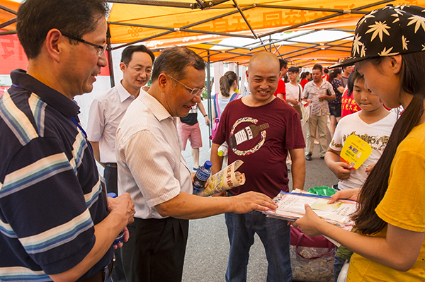 在新闻与传播学院迎新点,温兴生向新生家长询问孩子报名情况后,对家长们说:“放心吧,孩子在这里会不断成长进步。”