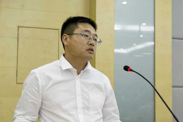 环境资源与国际贸易学院乔长涛博士作为新教师代表发言,表达了将以努力培养人才、教书育人为己任,立足讲台,倾心教学,把握前沿,专注科研的决心。