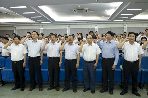 参会教师庄严宣誓。他们郑重承诺,履行教师的神圣职责,忠诚党的教育事业,热爱学生,为人师表,严谨治学,乐于奉献,做有理想信念、有道德情操、有扎实知识、有仁爱之心的真学者、好老师,立德树人,为中华民族的伟大复兴,献出自己毕生的精力。