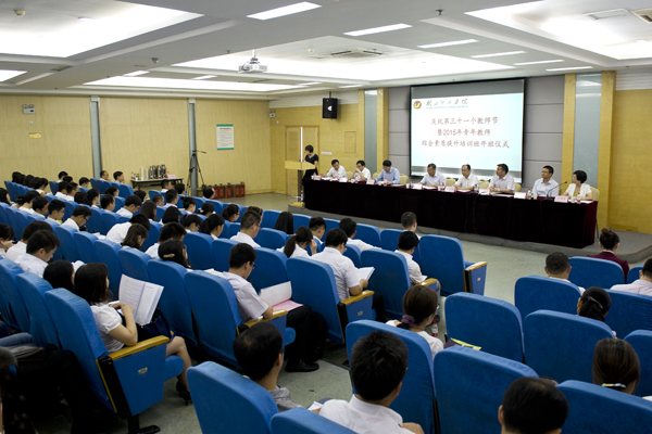 财政与公共管理学院林颖教授作为老教师代表发言,同新进教师分享了从教20余年的心得体会。她认为一名合格的大学教师应该具备高度的责任感、崇高的职业道德、谦虚勤勉的品德、良好的人格魅力、高超的教学艺术、永葆初心的科研激情、团结合作的团队精神。