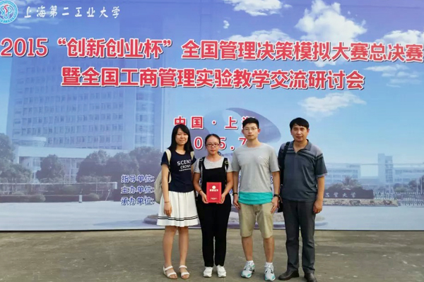 2015年全国参赛高校达600多所,参赛总人数达十万人,经过校内初赛、大区复赛、全国半决赛层层考验,最终有96支队伍获得晋级总决赛名额。参赛队伍按照比赛规则完成了竞争激烈的六轮企业经营竞赛环节。比赛中,参赛团队组建公司并通过模拟企业CEO、CFO、CMO等角色对公司进行模拟经营。各家公司的经营战略、经营成果、管理决策通过企业经营模拟软件系统“商道”软件平台处理后,由模拟系统根据公司销售收入、每股收益、投资回报率、债券评级、资本总额、战略水平等指标进行评分。电脑系统评分后自动排出各参赛队的最终经营成绩。最终,“一颗钉”代表队获得总决赛一等奖、 “Momentum”等三支队获得半决赛二等奖。