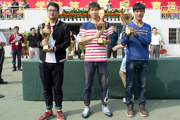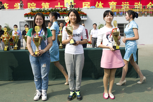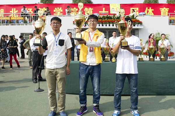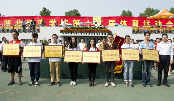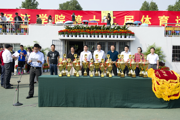 继续教育学院、金融学院、工商管理学院、会计学院、艺术学院、环境资源与国际贸易学院、物流与工程管理学院、财政与公共管理学院获得甲组团体总分前八名,校体育运动委员会副主任、体育经济与管理学院院长兰自力为其颁奖。法商学院金融系、工商管理系、会计系获得乙组团体总分前三名,法商学院党委副书记王立俊为其颁奖。继续教育学院、环境资源与国际贸易学院、会计学院获得田径比赛女子甲组前三名,校体育运动委员会委员、体育经济与管理学院副院长孙立海为其颁奖。继续教育学院、环境资源与国际贸易学院、金融学院获得田径比赛男子甲组前三名,校体育运动委员会委员、体育经济与管理学院党委书记李德洪为其颁奖。金融学院、会计学院、旅游与酒店管理学院、外国语学院、环境资源与国际贸易学院、工商管理学院,法商学院的会计系和金融系荣获优秀组织奖,校体育运动委员会副主任、学生工作处处长宋健为其颁奖。经济Q1541、注会Q1541等41个班级获评精神文明班级,校体育运动委员会委员、校团委书记王友刚为其颁奖。