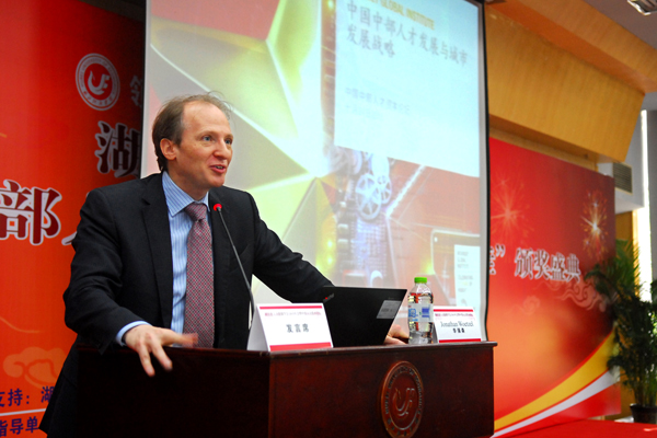 Jonathan Woetzel博士、刘纯志副主任等专家学者,分别就人力资本与城市发展战略、创新驱动与人才发展以及员工管理等问题发表主题报告演讲。我校熊俊峰博士就学术职业与大学教师薪酬结构设计做了主题发言。