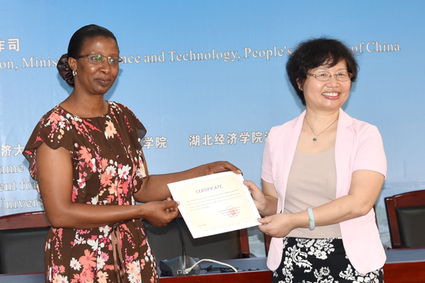 本网讯 10月25日,非洲“可持续城市”建设生态环境技术国际培训班圆满结束,全国政协社会和法制委员会驻会副主任吕忠梅出席培训班结业授证仪式,并为全体学员颁发结业证书。吕忠梅指出:“中非同属于发展中国家,在可持续城市建设和生态环境技术方面的合作与交流前景广阔。这个项目来之不易,湖北经济学院做了大量的工作,会议的开幕式我有事没能参加,感到十分遗憾。很荣幸能够在会议的最后一天与大家见面,非常开心,希望大家在中国有一段美好的回忆。”