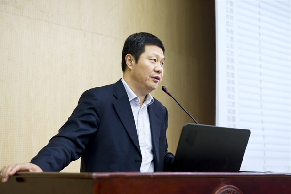 聘任仪式结束后,黄群慧教授作了题为《当前的经济形势与未来的增长动力》的学术讲座。黄教授根据近期我国经济发展的主要指标和数据,对当前的经济形势做出了判断,对经济“新常态”的内涵和特征进行了阐述。他从经济增速放缓趋势与经济失速风险、经济服务化趋势与制造业空心化风险、去产能化趋势与经济债务风险、两化融合趋势与新工业革命风险、供给要素集约化趋势与要素市场改革滞后风险、价值链攀升趋势与两端挤压风险六个方面结合国内外的前沿课题,对产业发展和工业化进程的未来趋势和面临的风险进行了深入的分析。黄群慧依据《中国制造2025》规划,针对新一轮的科技革命和产业变革提出了应对措施和改革思路。
