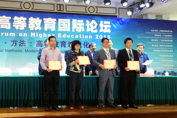 本网讯 11月13—15日,由中国高等教育学会主办、广东省教育研究院承办的2015高等教育国际论坛暨中国高等教育学会学术年会在珠海召开。我校工商管理学院教师熊俊峰博士获得第十一届高等教育学优秀博士学位论文奖,并作专题报告。