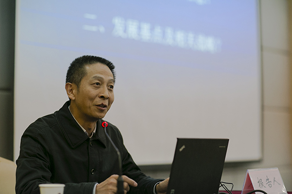 省发展战略规划办公室副主任徐新桥博士作主题为《十三五发展战略与高校人才培养》的报告。他认为,当前国际金融危机在相当长时期依然存在,面临诸多矛盾叠加和风险隐患增多的严峻挑战,外部环境不稳定不确定因素增多等等问题,要想走出中等收入陷阱,必须转型发展。徐新桥深刻解读了十三五规划建议,指出十三五的奋斗目标是全面建成小康,世界以和平发展为主题和我国经济发展向好为实现这一目标提供了条件,但是受后国际金融危机的影响,我国经济和社会发展出现不平衡、不协调、不可持续的现象,面临严峻挑战的同时也拥有战略机遇,要坚持人民主体、科学发展、改革、法治、统筹内外、党领导的原则和创新、协调、绿色、开放、共享的理念,坚定信心,锐意进取,奋发有为。他介绍了国家和湖北省的发展战略规划的相关内容,结合高校人才培养的特点,提出制定发展规划的理念要高远,实现路径要实达,要坚持目标导向和问题导向,敢于创新突破,更好地促进高水平财经大学建设。