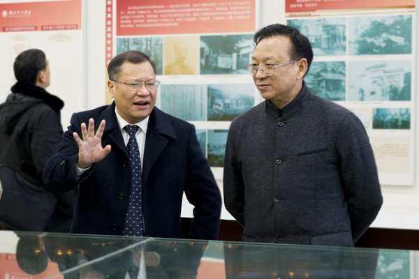会前,校党委书记温兴生热情接待了江必新一行,陪同参观了校园、校史馆、旅游与餐饮实验(实训)教学示范中心。