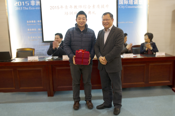 陈向军、张以林分别为培训班职业规划设计比赛、教学基本功演练比赛获奖者颁奖。