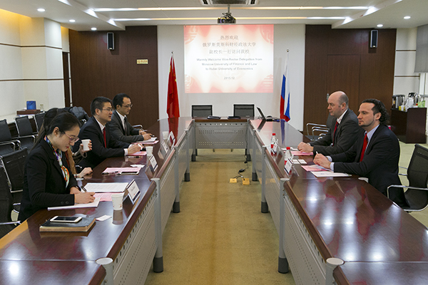 本网讯(特约记者 李勇 摄影 邹冉)12月15日,俄罗斯莫斯科财经政法大学第一副校长Oleg Zabelin一行2人访问我校。副校长何慧刚会见并与客人进行友好座谈。