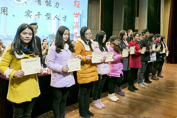 温兴生发表讲话指出,此次表彰的先进个人和集体是我校“两有三实”人才培养特色的集中体现,他号召全体学生学习先进事迹。他说,“两有三实”作为学校办校治学的导向和人才培养目标,是学校的特质所在。有思想,首先是要有正确的思想,根本的是要有德,德最重要的就是弘扬和践行社会主义核心价值观。有能力,主要表现在能解决问题,有终身学习的能力。实践体现的是一种精神,实干体现的是一种作风,实用体现的是一种效果。实践实用实干的人才培养特色,与当前正在开展的“三严三实”教育有着紧密的联系。温兴生引用习近平总书记在中央政治局第二十六次集体学习时的讲话,说明严和实的品德全社会都要弘扬,特别是要抓好广大青少年的教育,使他们从小打好严和实的品德底子。我校“两有三实”人才培养特色体现了严与实精神品质,要在新的时代背景下,赋予新的内涵。温兴生勉励广大学生树立正确的思想,锻炼强大的适应市场经济的能力,坚持实践精神,发扬实干作风,成为实用人才。