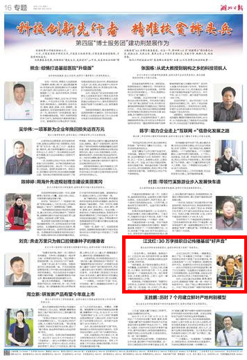 本网讯(记者 陶慧) 3月15日,省委组织部、团省委联合召开湖北省第四批博士服务团总结表彰暨第五批动员培训会,省委常委、省委组织部部长、省委人才工作领导小组组长于绍良出席会议并讲话。会上,我校党委宣传部副部长江沈红被评为第四批“博士服务团”工作先进个人。3月15日,《湖北日报》在“第四届‘博士服务团’建功荆楚展作为”专栏中报道了江沈红的典型事迹。