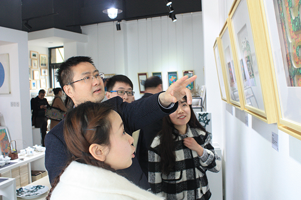 本网讯 3月11日下午,由湖北经济学院艺术学院“古风醇”学生创业团队、光谷联合集团及艺术+杂志社联合举办的“90'创意美术作品展”在武汉创意天地壹空间画廊开展。副校长何慧刚在招生与毕业生就业指导处、艺术学院相关负责人的陪同下,参加了开幕式。这是首次由社会单位为我院学生举办的展卖会。