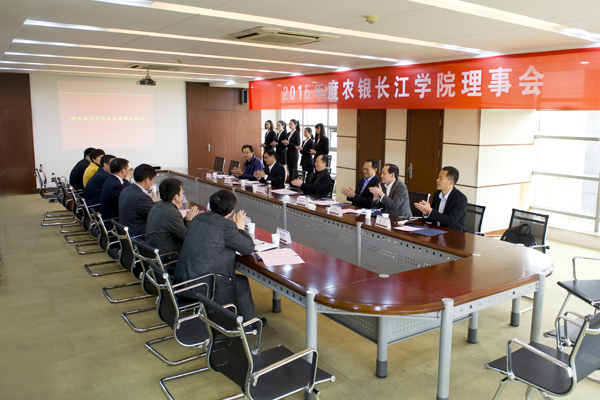 本网讯(特约记者 李正旺 摄影 陶慧)3月25日,2015年度农银长江学院理事会在我校召开。中国农业银行湖北省分行行长朱正罡、副行长刘永生,校长漆腊应、副校长何慧刚出席。农银长江学院理事、中国农业银行湖北省分行人力资源部负责人、金融学院教师、农银长江班学生代表参加。