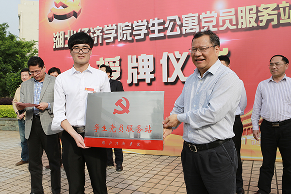 温兴生为学生党员服务站授牌。